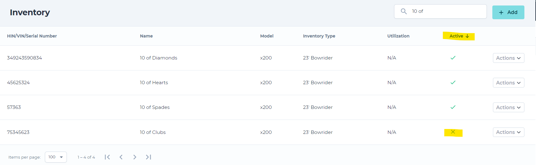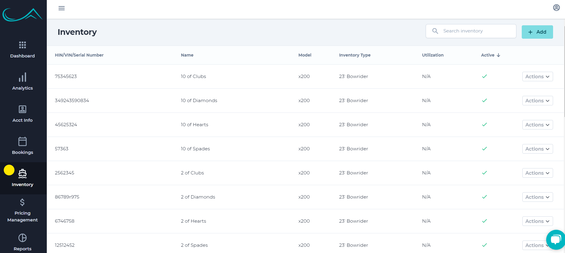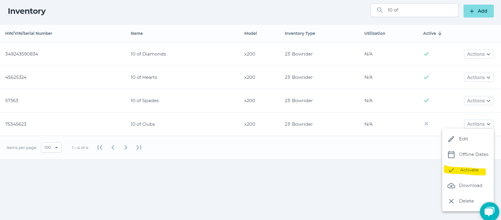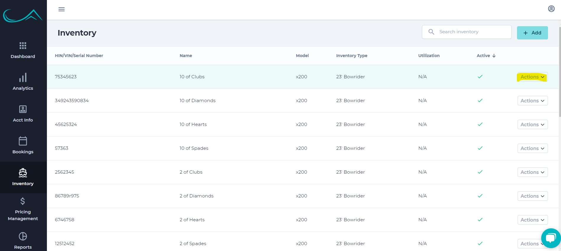 2. Click "Actions" next to the vessel you would like to deactivate and select "Deactivate"
